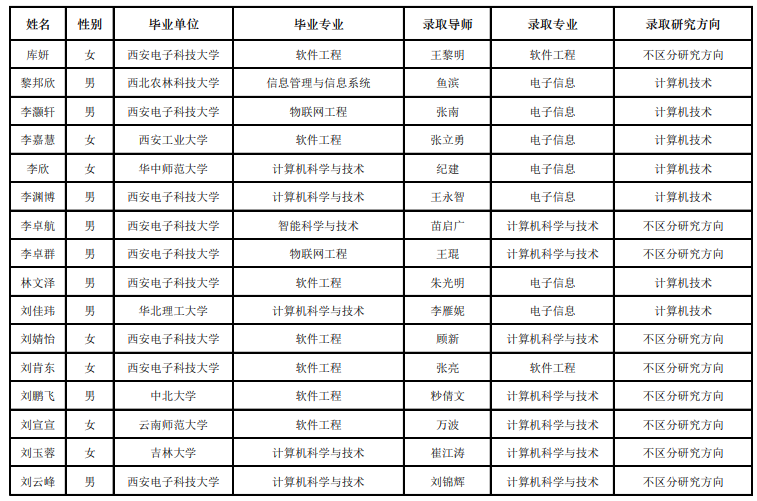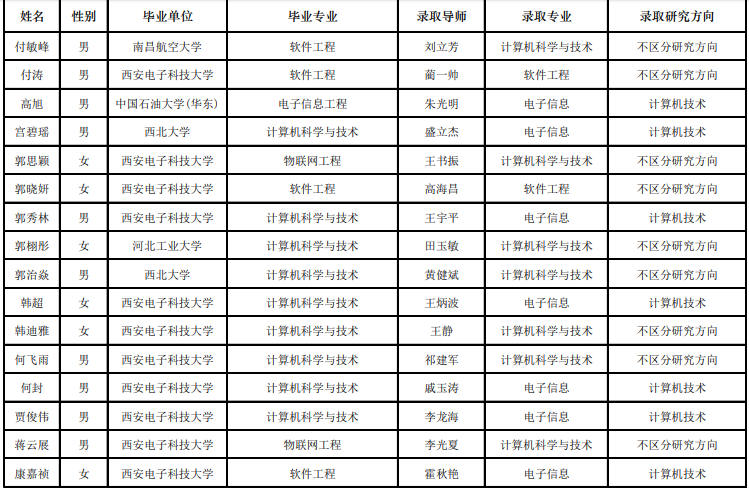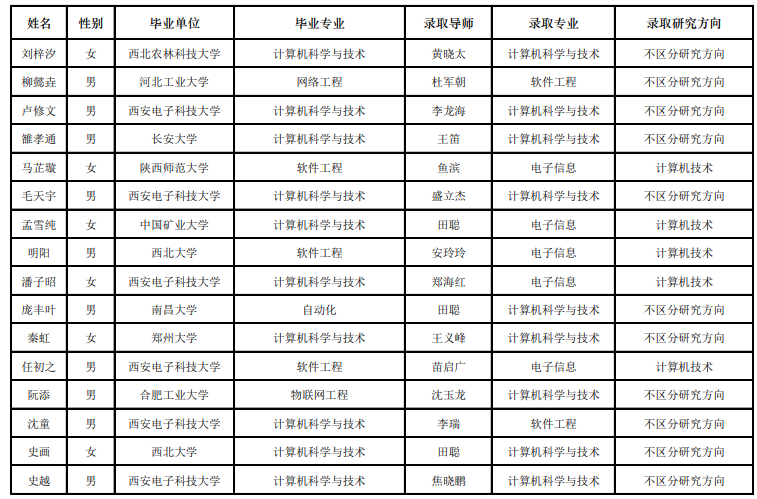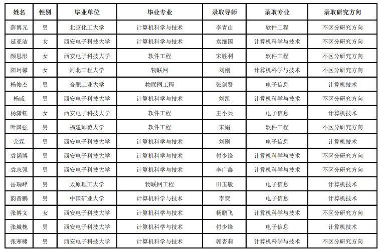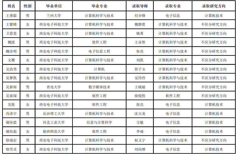 西电考研辅导班:2020西安电子科技大学计算机科学与技术学院“优研计划”夏令营优秀营员名单公示