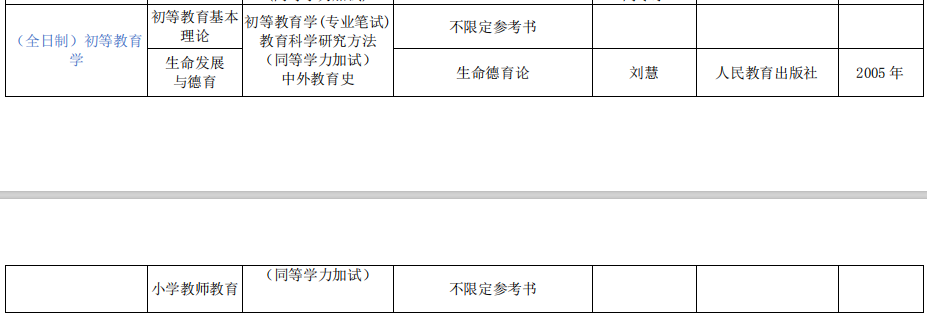 2020年首师大初等教育学院初等教育学考研招生目录