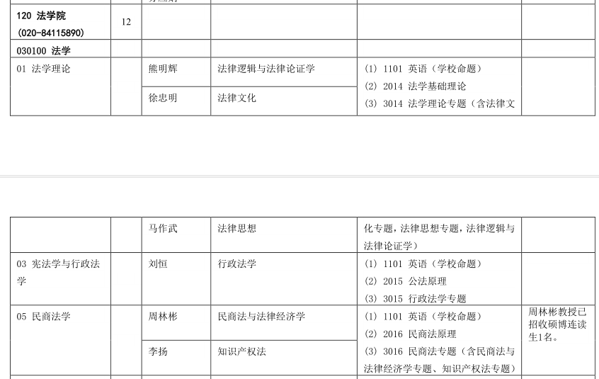 中山大学考博辅导班:中山大学2020年法学院博士研究生招生学科专业目录