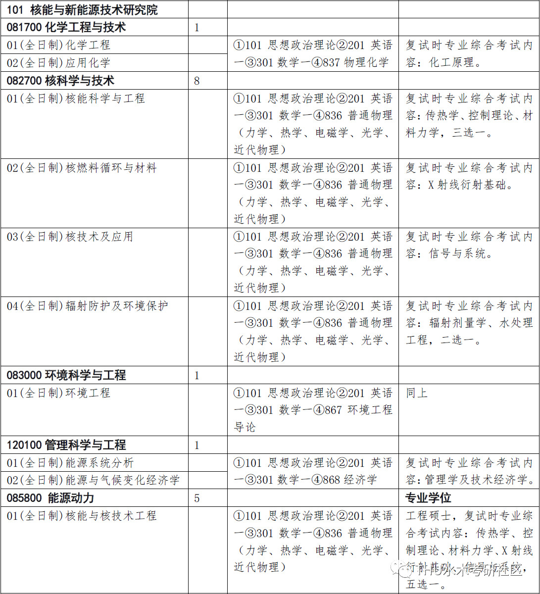 清华大学考研辅导班:2020年清华大学核能与新能源技术研究院考研招生专业、招生人数、考试科目