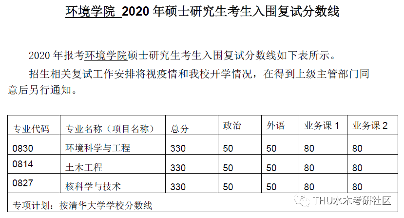 清华大学考研辅导班:清华大学环境学院2020年硕士研究生考生入围复试分数线