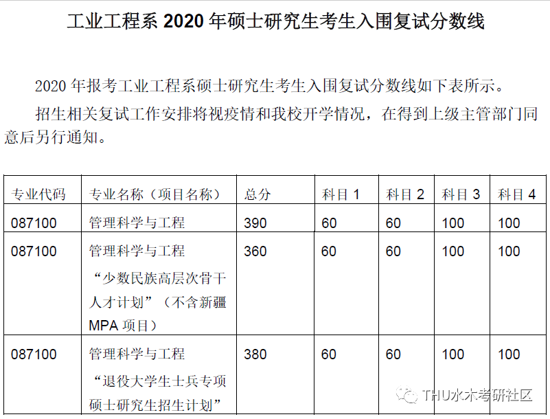 清华大学考研辅导班:清华大学工业工程系2020年硕士研究生考生入围复试分数线