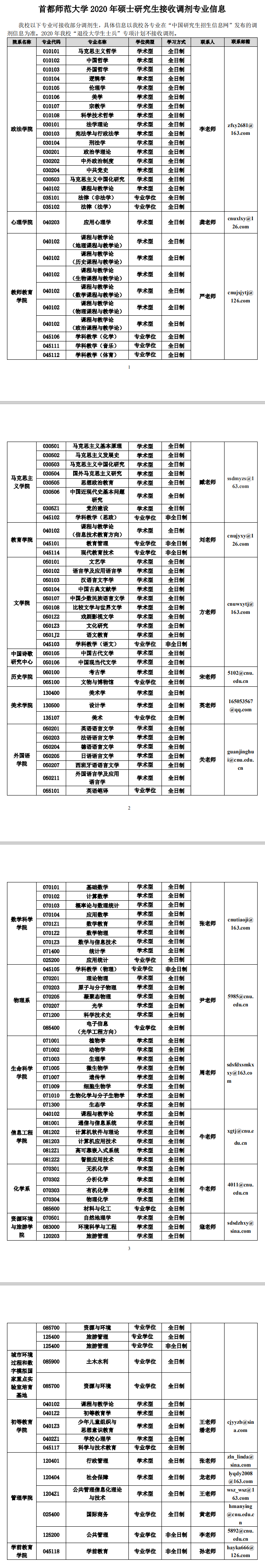 首师大考研辅导班:2020年首都师范大学硕士研究生接收调剂专业信息汇总