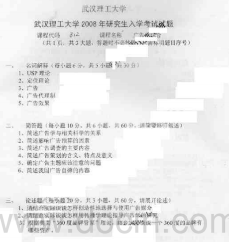 2020-2021年武汉理工考研辅导班:武汉理工大学812广告学综合2008年考研真题