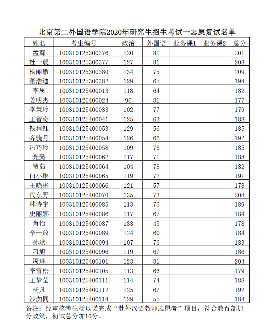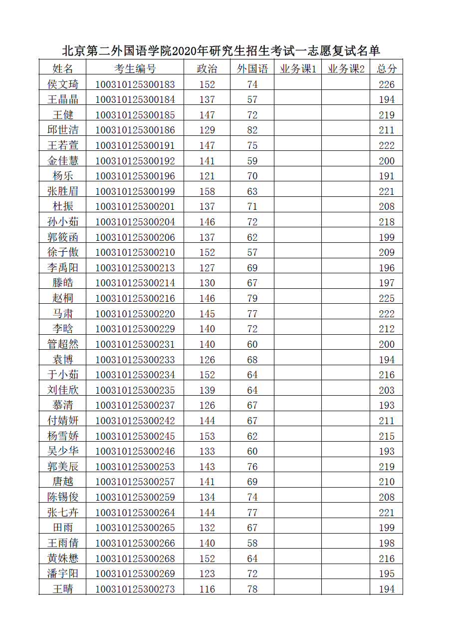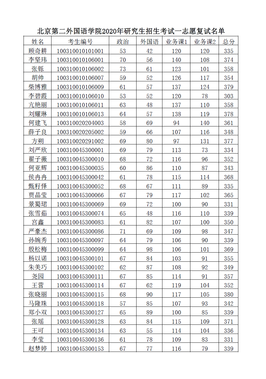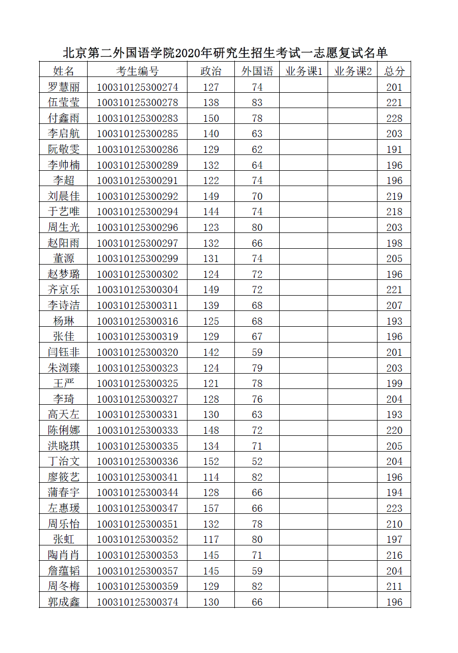 北京第二外国语学院考研辅导班:北京第二外国语学院2020年研究生招生考试一志愿复试名单