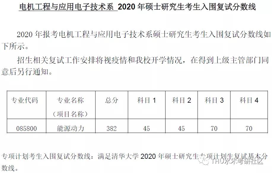 清华大学考研辅导班:清华大学电机系2020年硕士研究生考生入围复试分数线