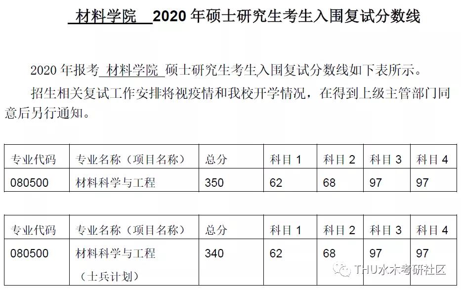 清华大学考研辅导班:清华大学材料学院2020年硕士研究生考生入围复试分数线