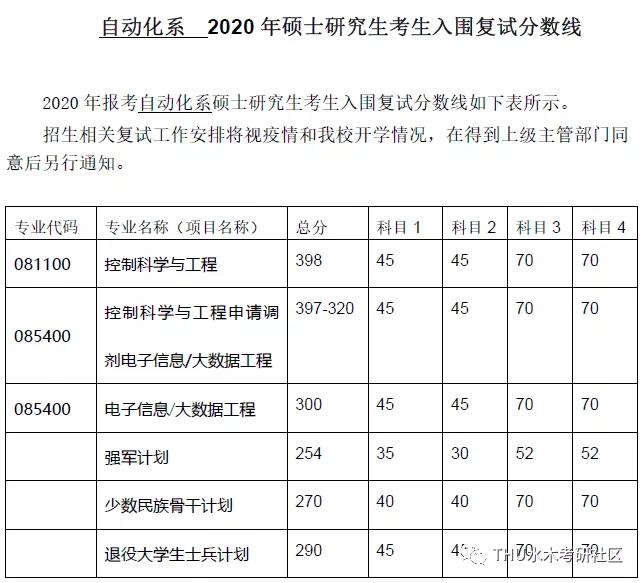清华大学考研辅导班:清华大学自动化系2020硕士研究生考生入围复试分数线