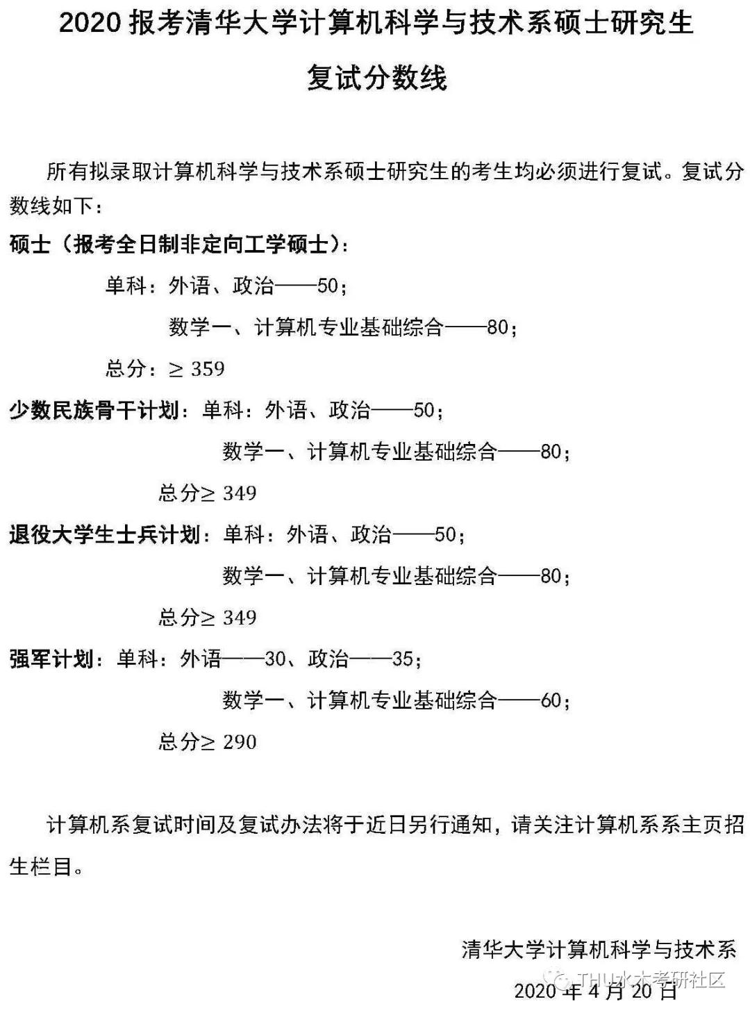 清华大学考研辅导班:清华大学计算机科学与技术系2020硕士研究生考生入围复试分数线