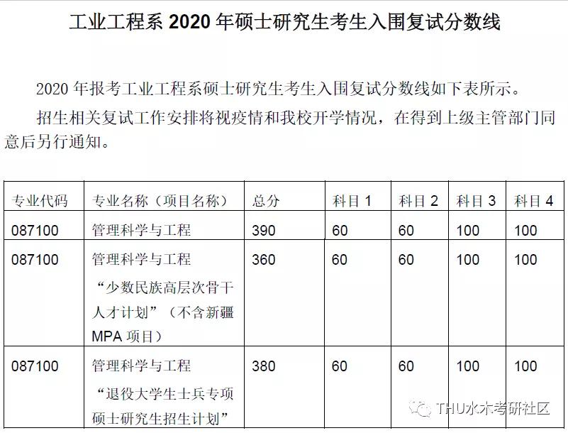 清华大学考研辅导班:清华大学工业工程系2020硕士研究生考生入围复试分数线