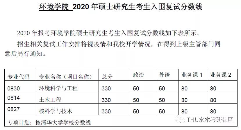 清华大学考研辅导班:清华大学环境学院2020硕士研究生考生入围复试分数线