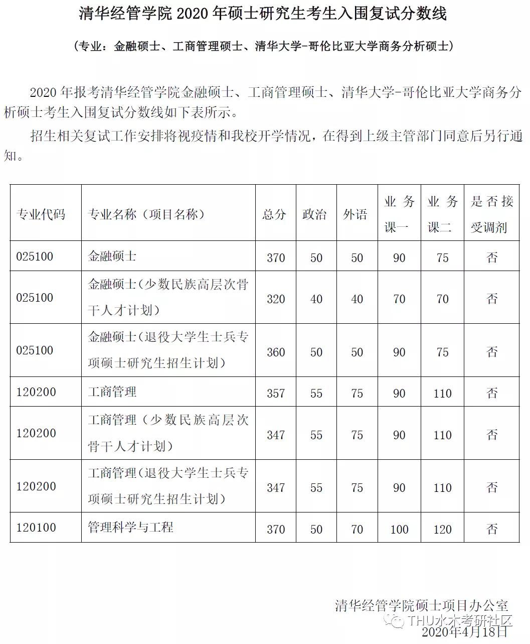 清华大学考研辅导班:清华大学经济管理学院2020硕士研究生考生入围复试分数线