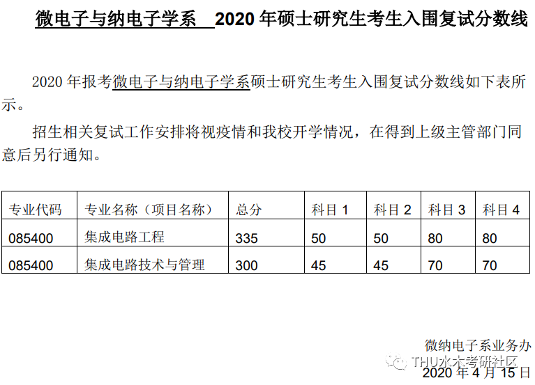 清华大学考研辅导班:清华大学微电子与纳电子学系2020硕士研究生考生复试分数线