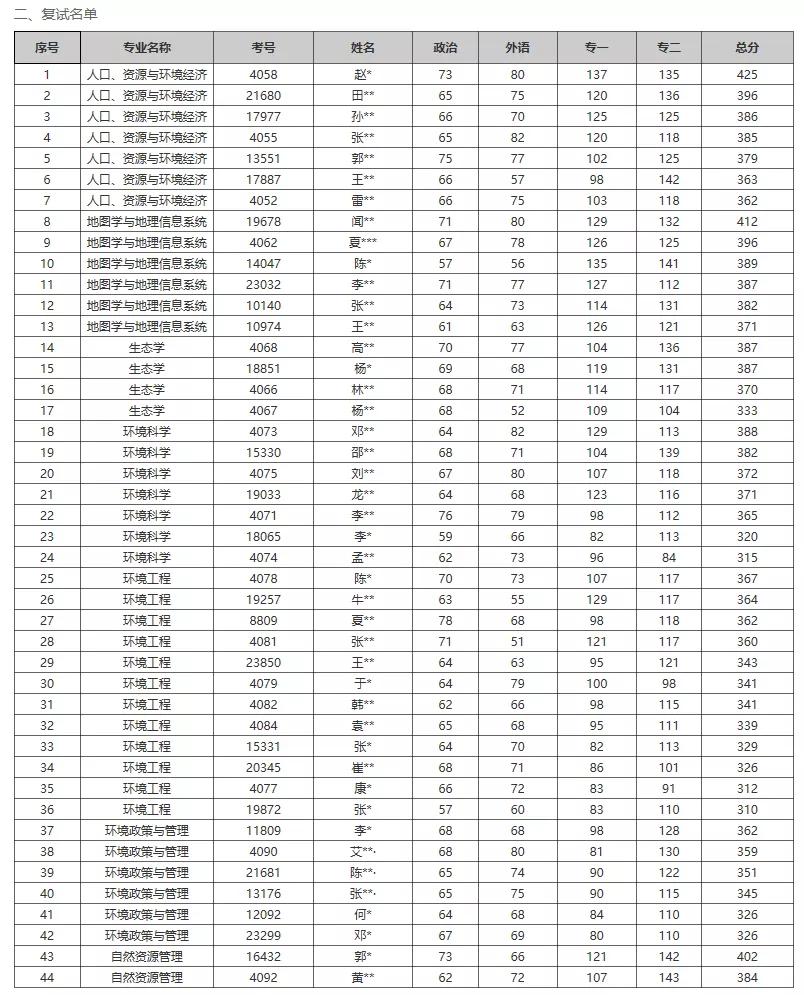 人大考研辅导班:中国人民大学环境学院2020年考研复试分数线和复试名单