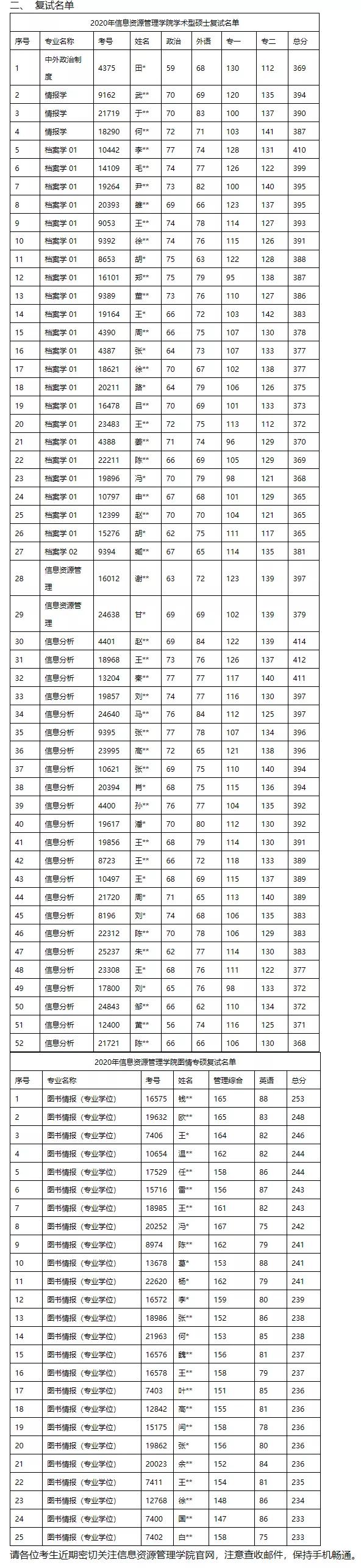 人大考研辅导班:中国人民大学信息资源管理学院2020年考研复试分数线和复试名单