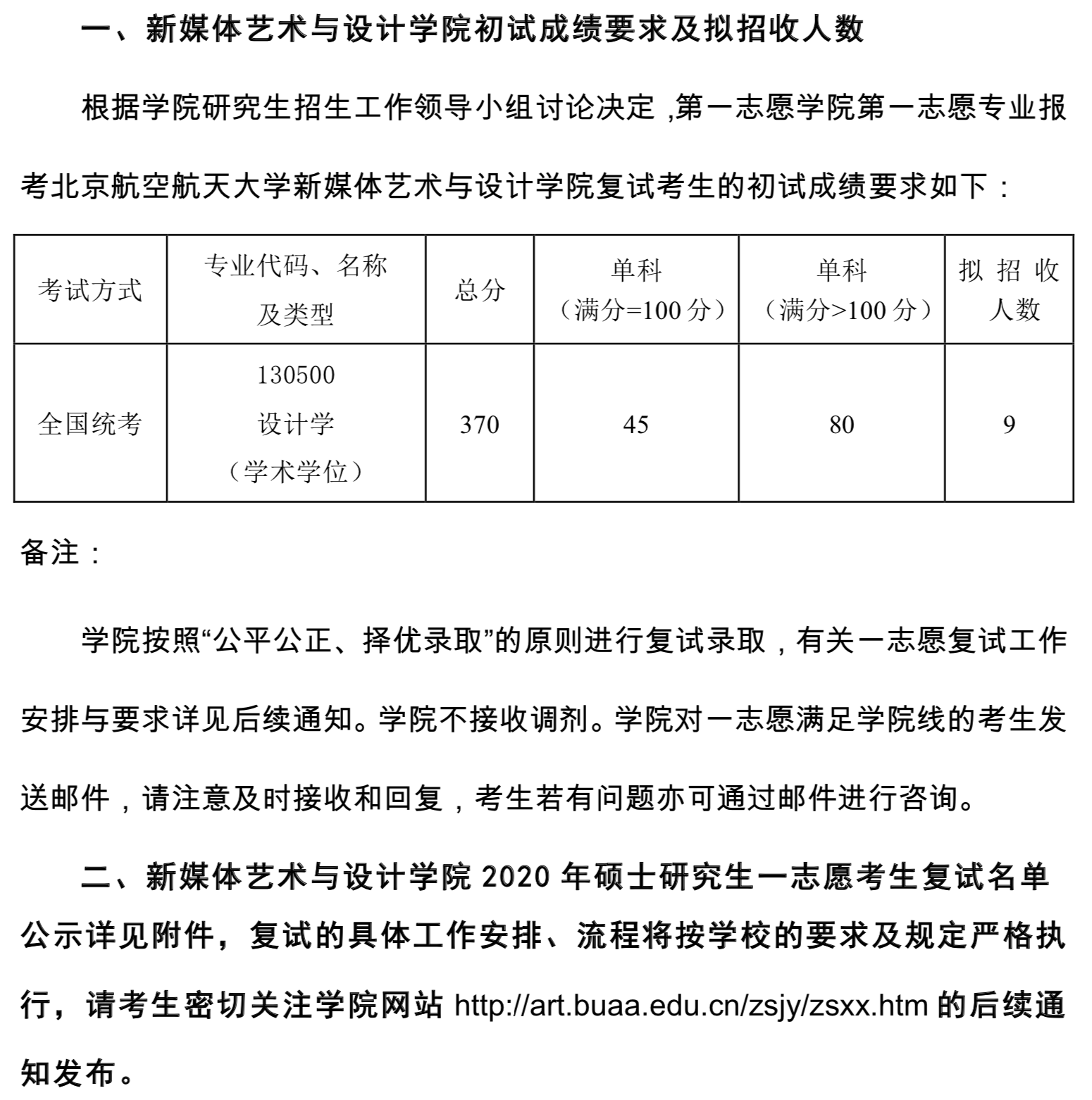 北航考研辅导班:2020年北京航空航天大学新媒体艺术与设计学院考研复试分数线及拟招生人数