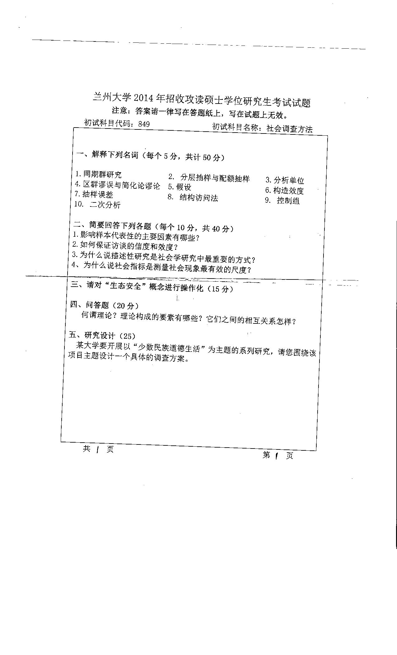 兰大考研辅导班:兰州大学2014社会调查方法考研真题