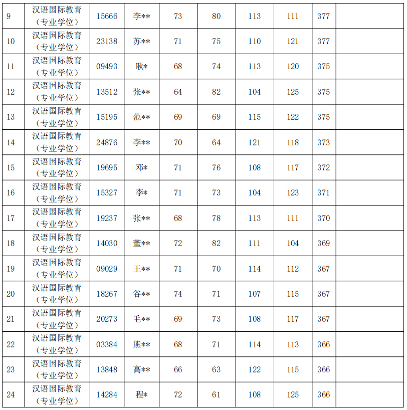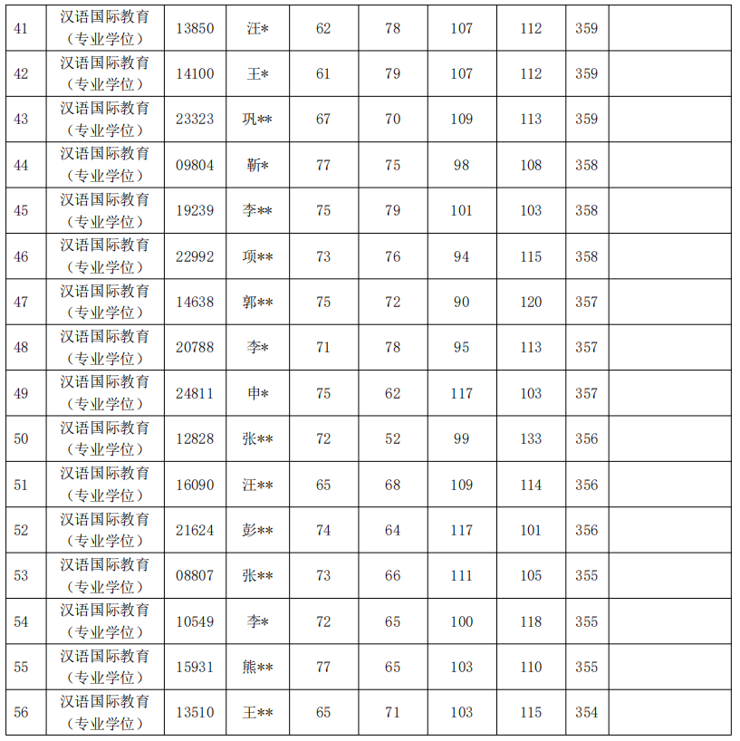 我院汉语国际教育(专业学位)2020年硕士研究生复试分数线为: