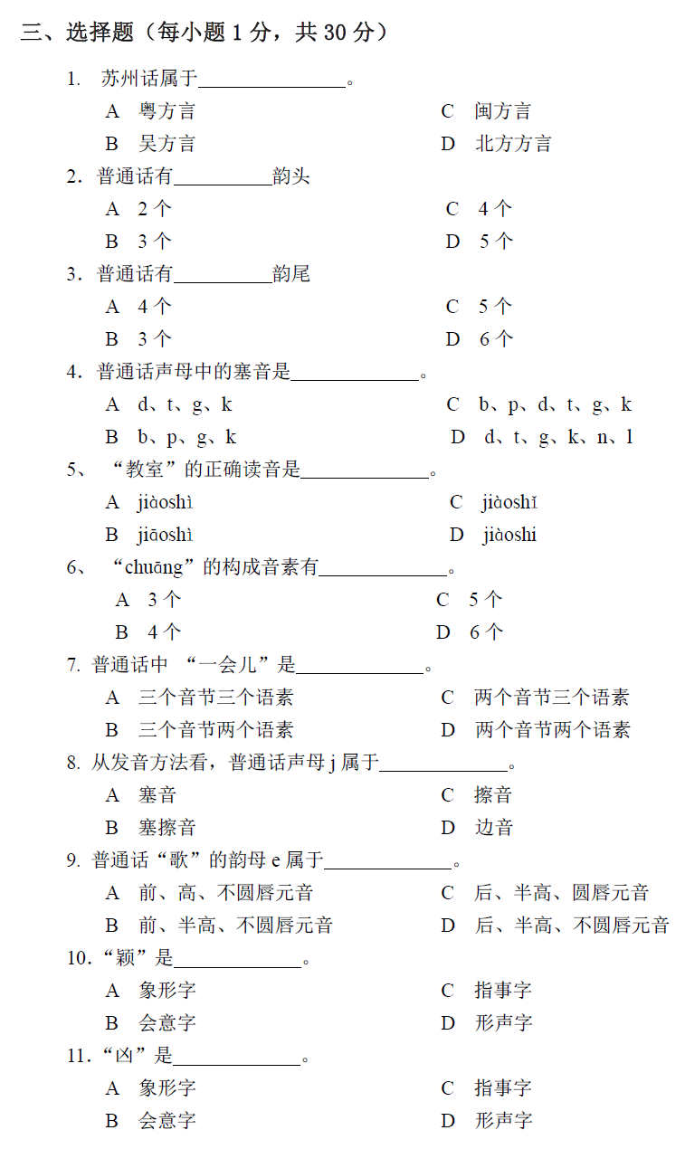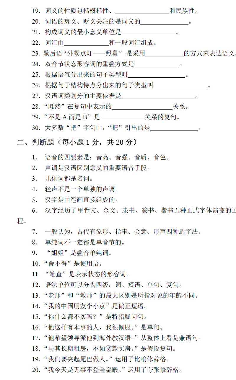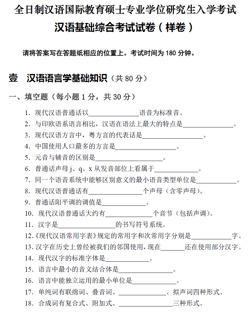 北京第二外国语学院考研辅导班:北二外全日制汉语国际教育硕士专业学位研究生入学考试汉语基础综合考试试卷(样卷)