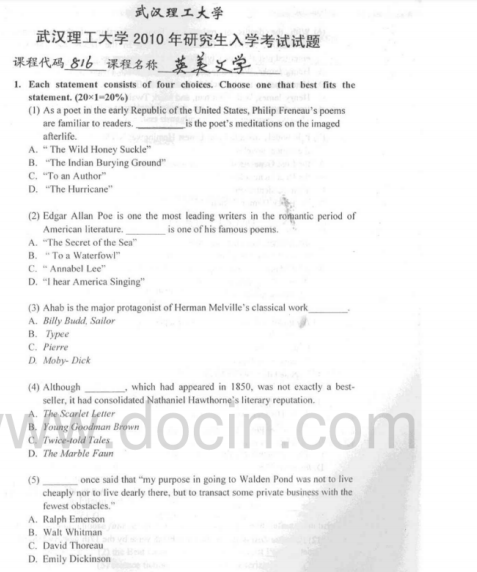 2020-2021年武汉理工考研辅导班:武汉理工大学816英美文学2010年考研真题