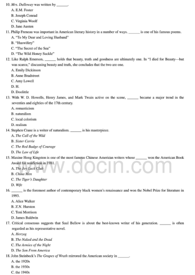 2020-2021年武汉理工考研辅导班:武汉理工大学816英美文学2010年考研真题