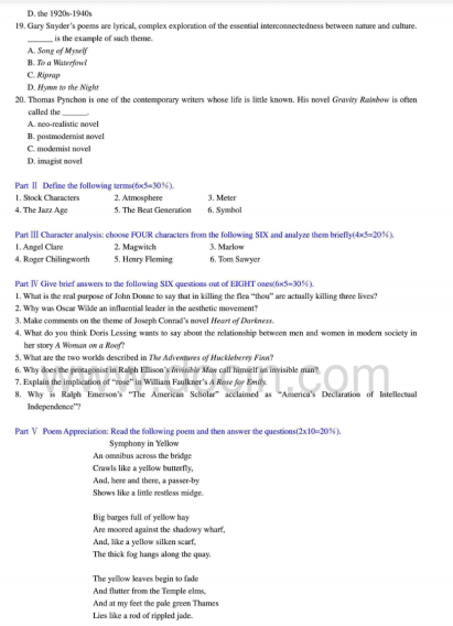 2020-2021年武汉理工考研辅导班:武汉理工大学816英美文学2009年考研真题