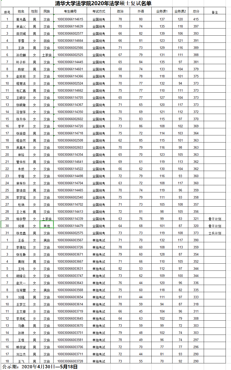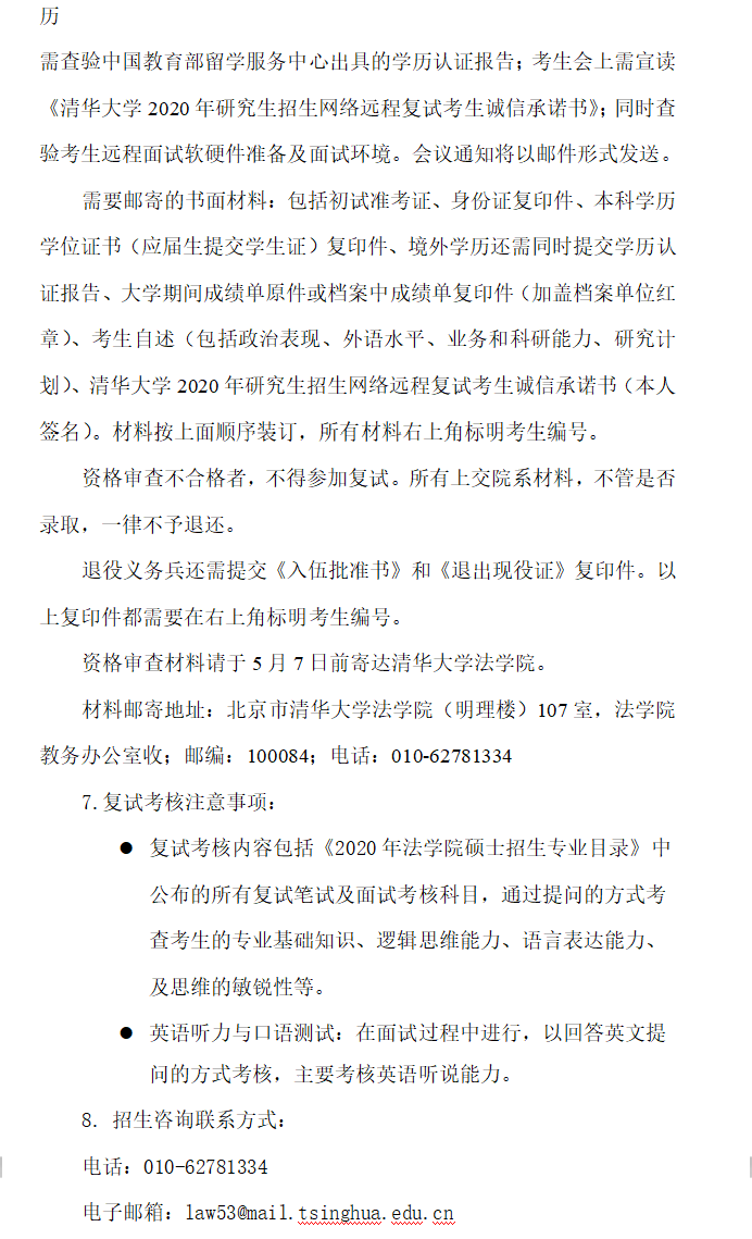 清华大学考研辅导班:清华大学法学院2020年考研复试名单及录取实施细则