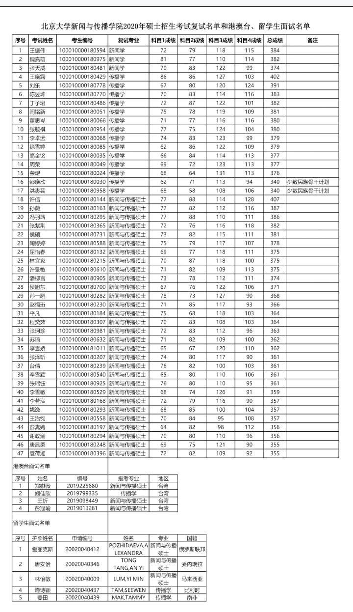 9.复试名单:见《北京大学新闻与传播学院2020年硕士招生考生复试名单》