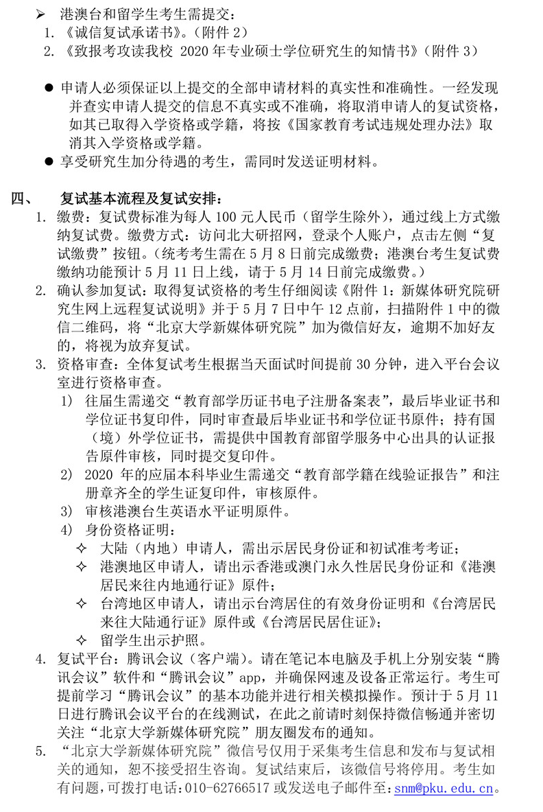 北大考研辅导班:2020年北京大学​​新媒体研究院硕士研究生复试分数线、复试名单等复试细则
