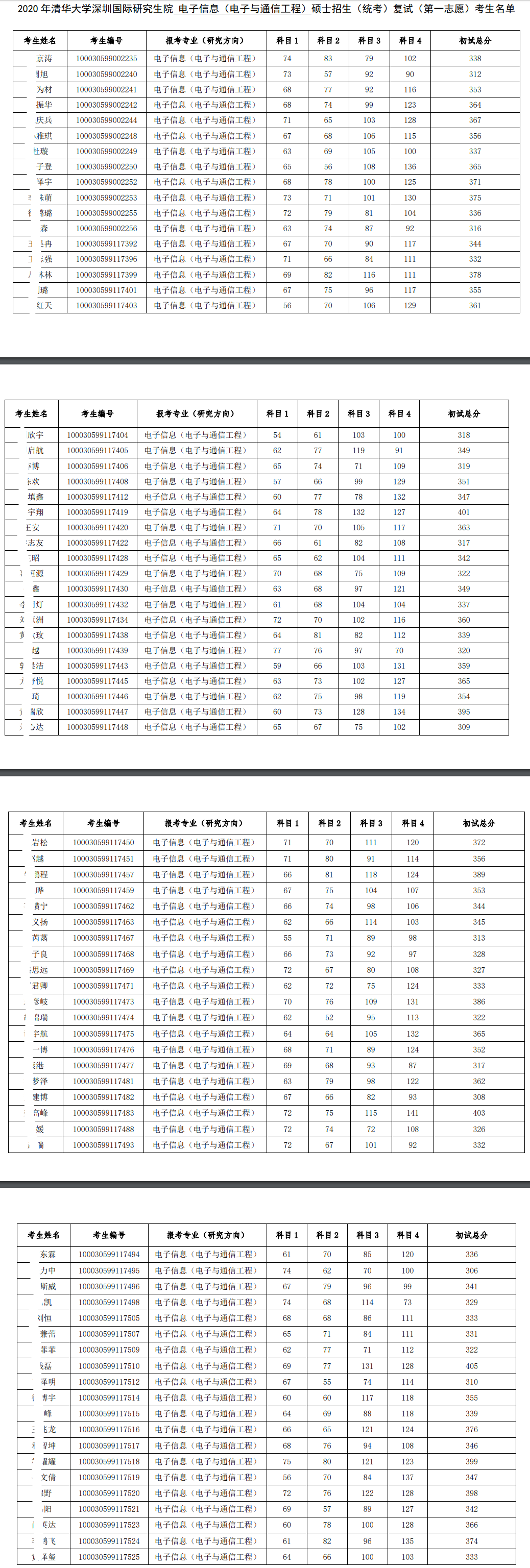 清华大学考研辅导班:2020年清华大学深圳国际研究生院电子信息(电子与通信工程)硕士招生考研复试一志愿考生名单