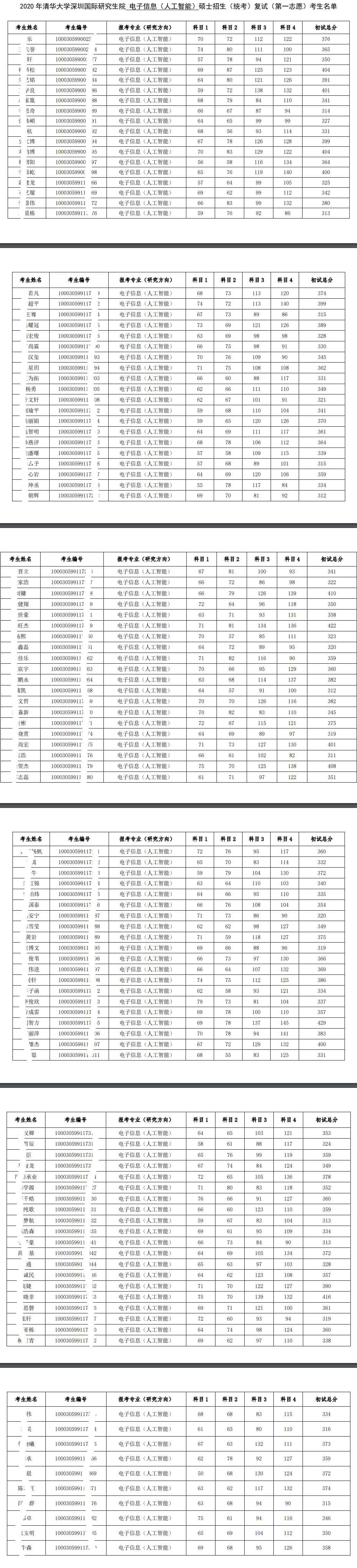 清华大学考研辅导班:2020年清华大学深圳国际研究生院电子信息(人工智能)硕士招生考研复试一志愿考生名单