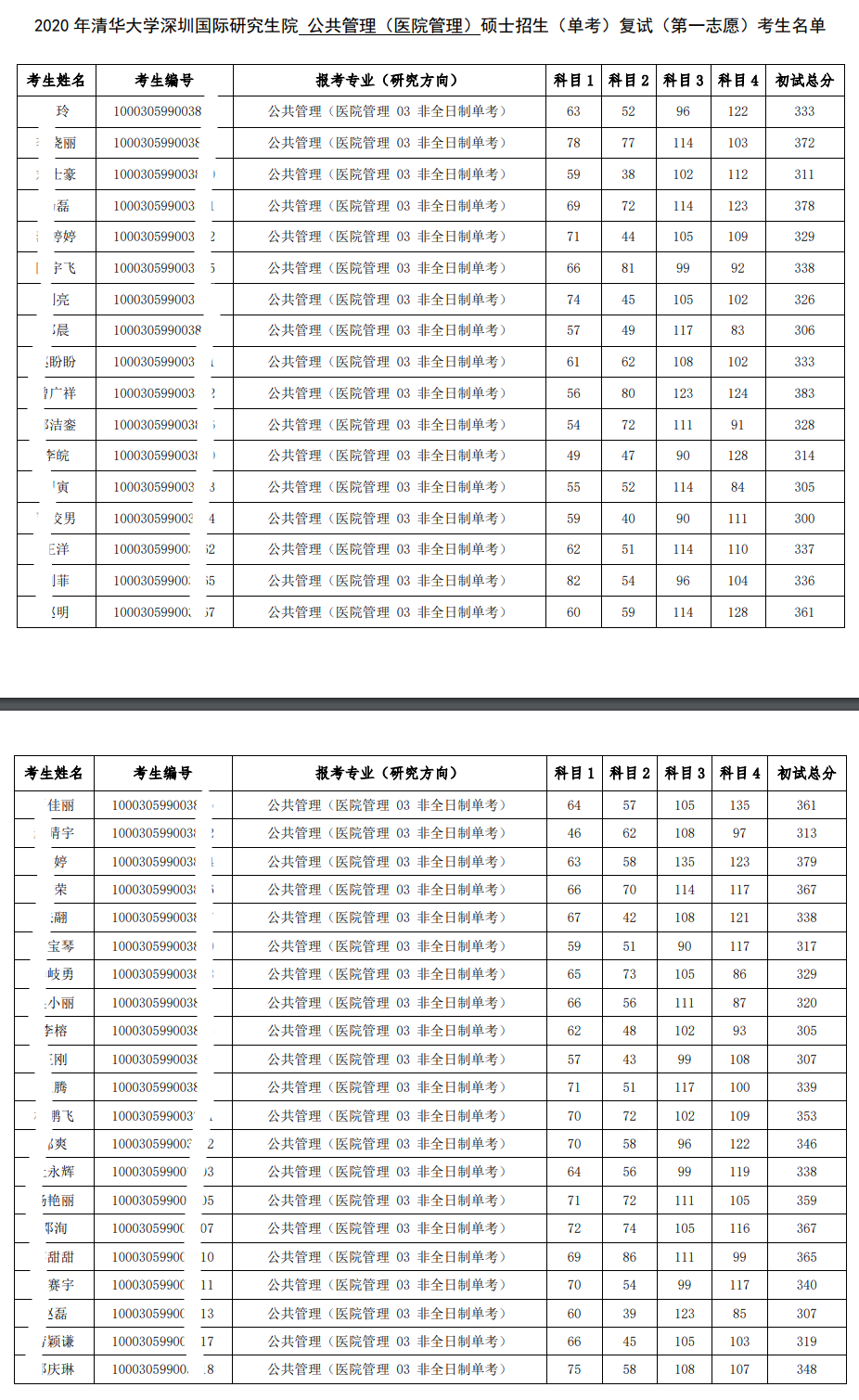 清华大学考研辅导班:2020年清华大学深圳国际研究生院公共管理(医院管理)硕士生考研复试(单考)一志愿考生名单