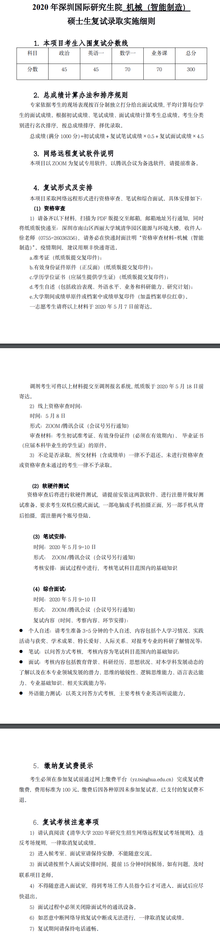 清华大学考研辅导班:2020年清华大学深圳国际研究生院机械(智能制造)硕士生考研复试招生名额及安排细则