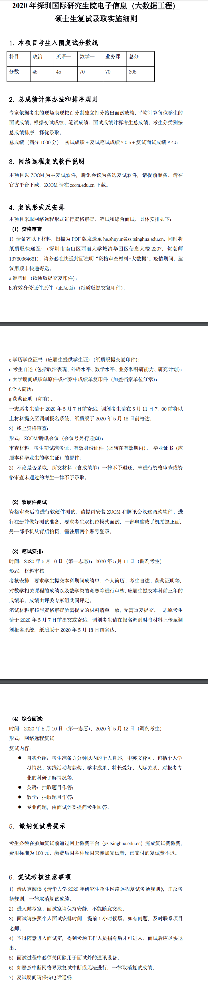 清华大学考研辅导班:2020年清华大学深圳国际研究生院电子信息(大数据工程)硕士生考研复试招生名额及安排细则