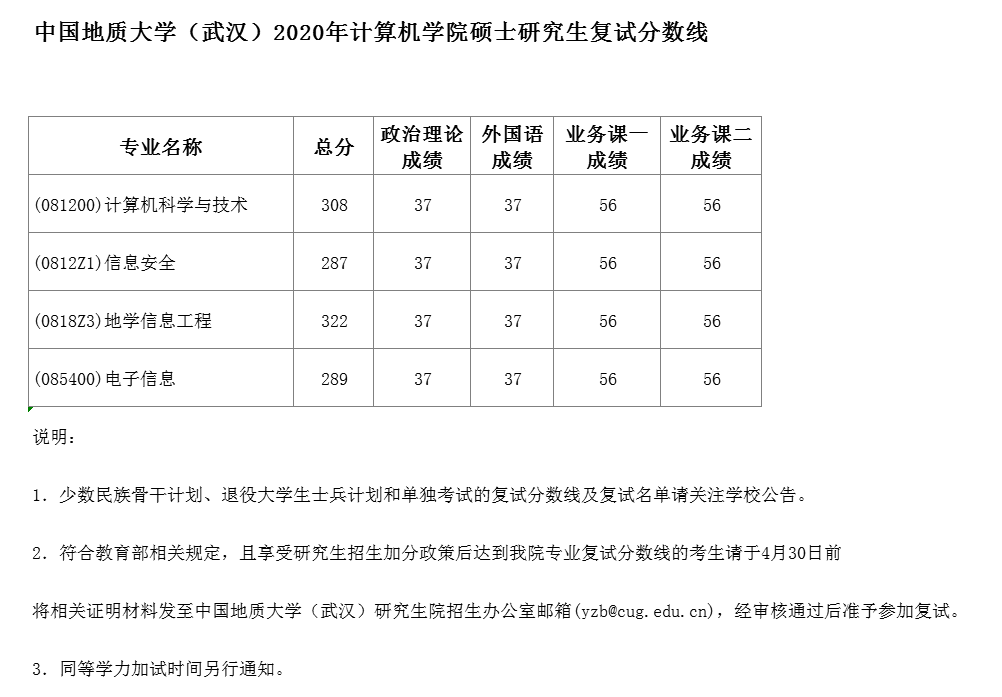中国地质大学考研辅导班: 中国地质大学(武汉)2020年计算机学院硕士研究生复试分数线