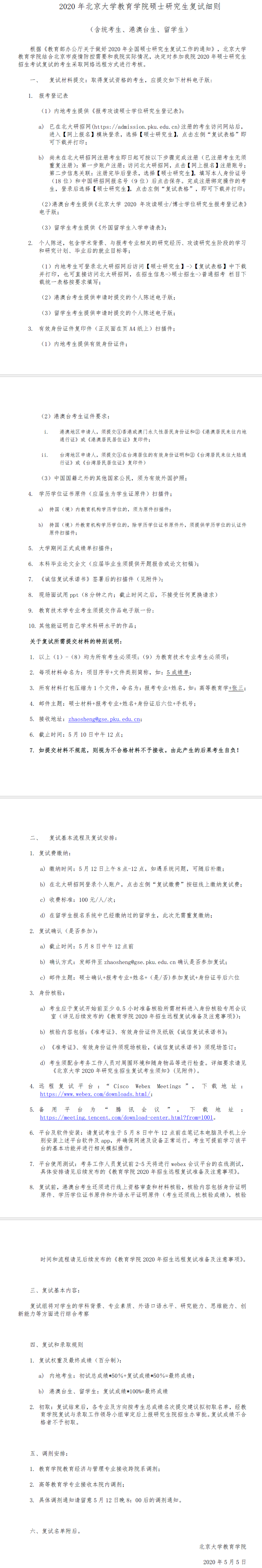 北大考研辅导班:2020年北京大学教育学院考研复试名单、复试内容及安排细则