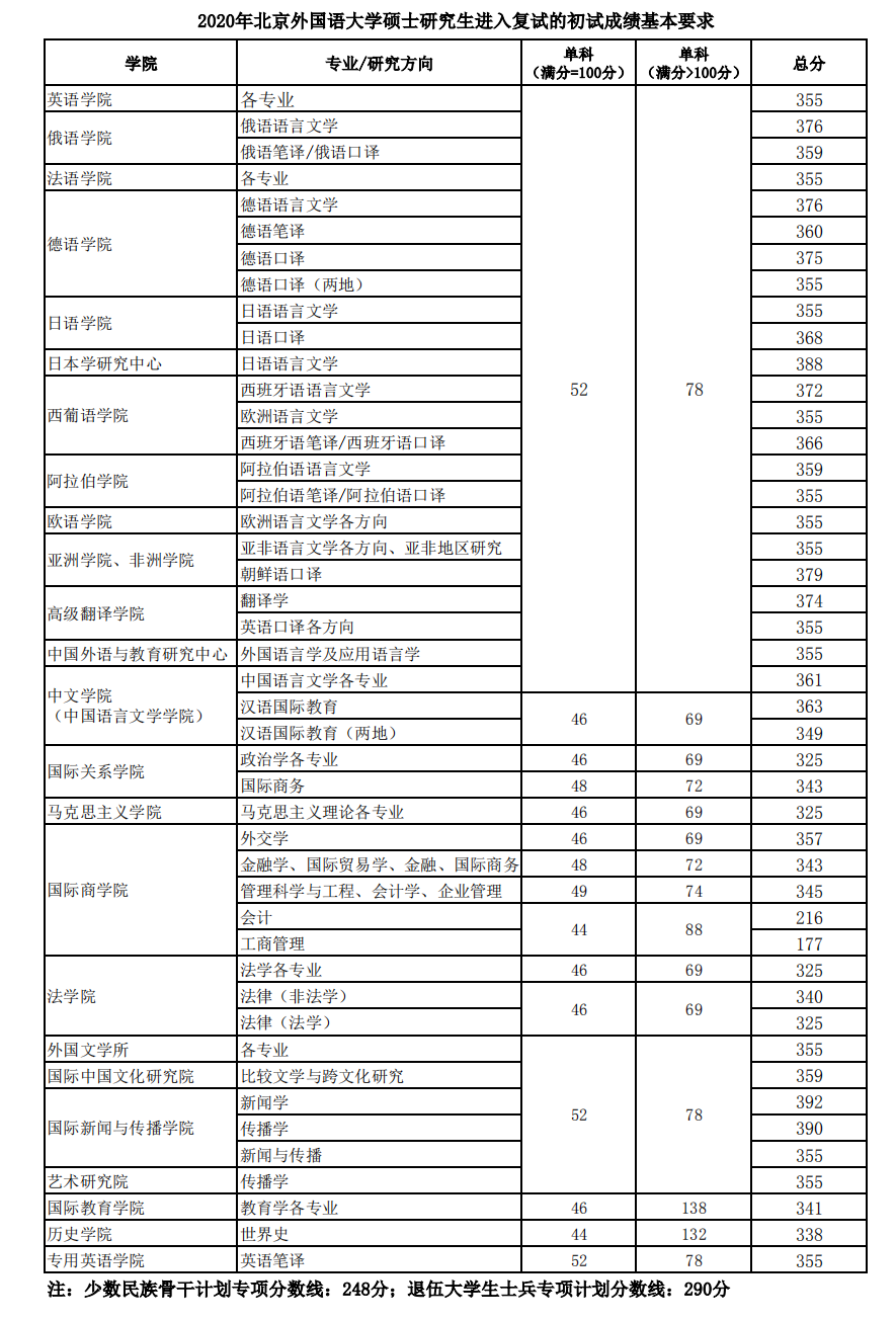 北京外国语大学考研辅导班:北京外国语大学2020年翻译硕士考研复试分数线