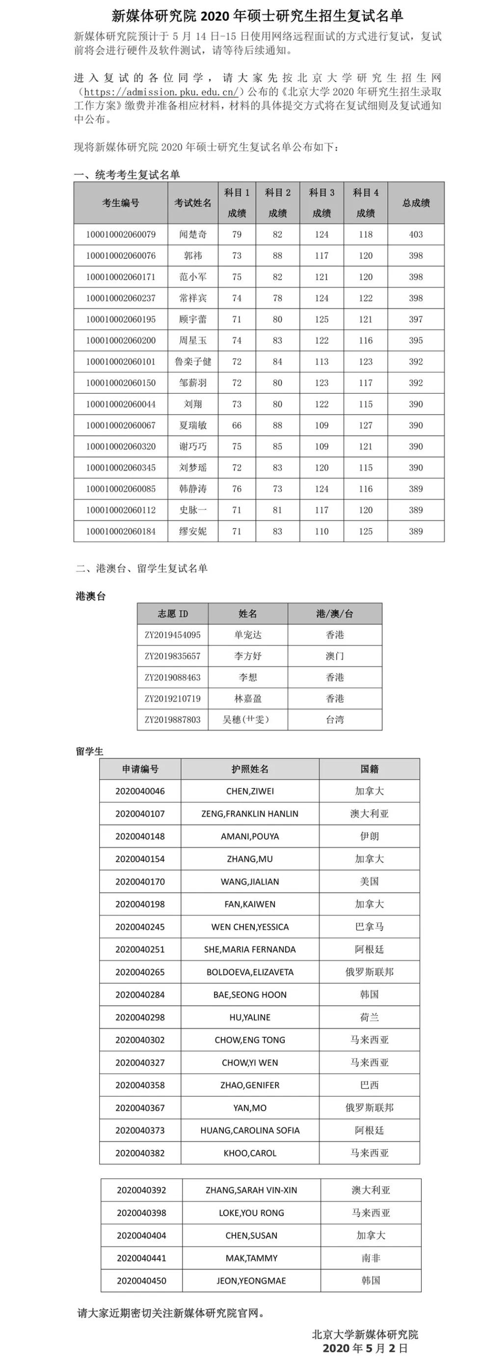 北大考研辅导班:北京大学新媒体研究院2020年考研复试名单及复试细则