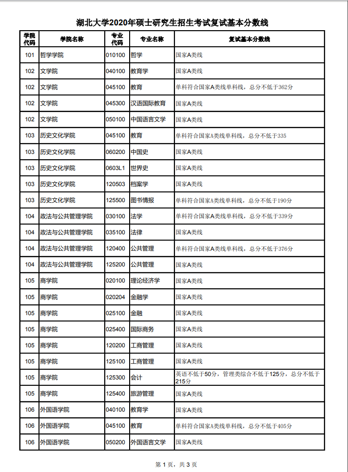 湖北大学考研辅导班:湖北大学2020年硕士研究生招生考试复试基本分数线