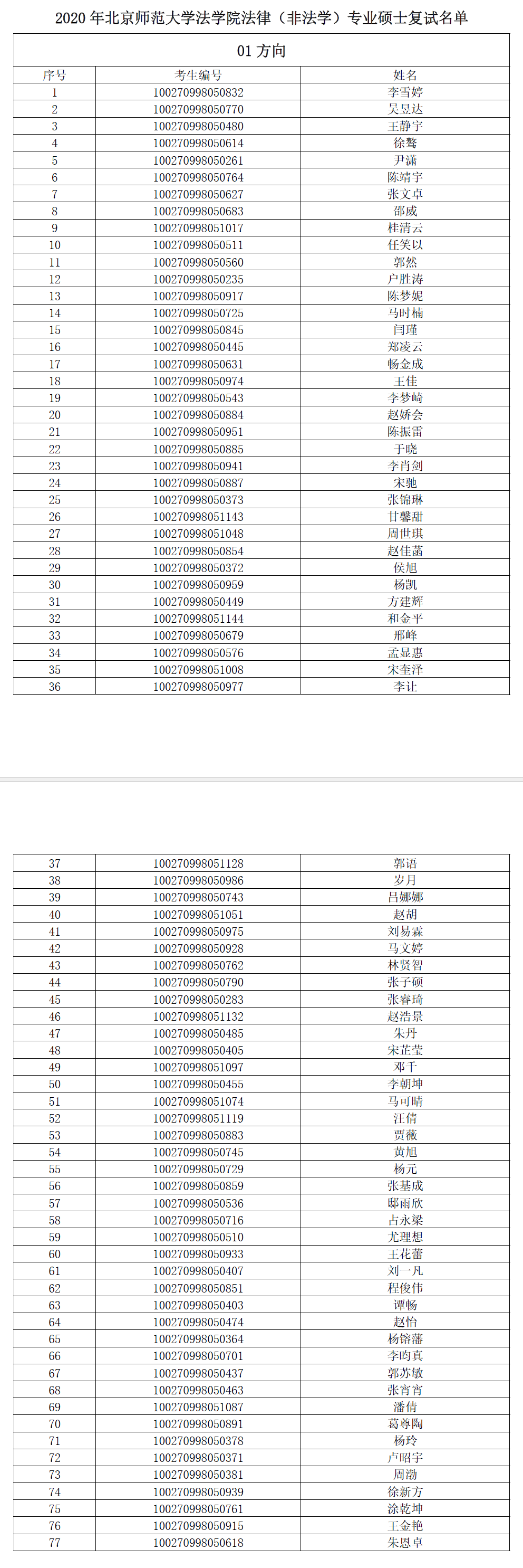 北师大考研辅导班:2020年北京师范大学法律(非法学)专业硕士考研复试名单