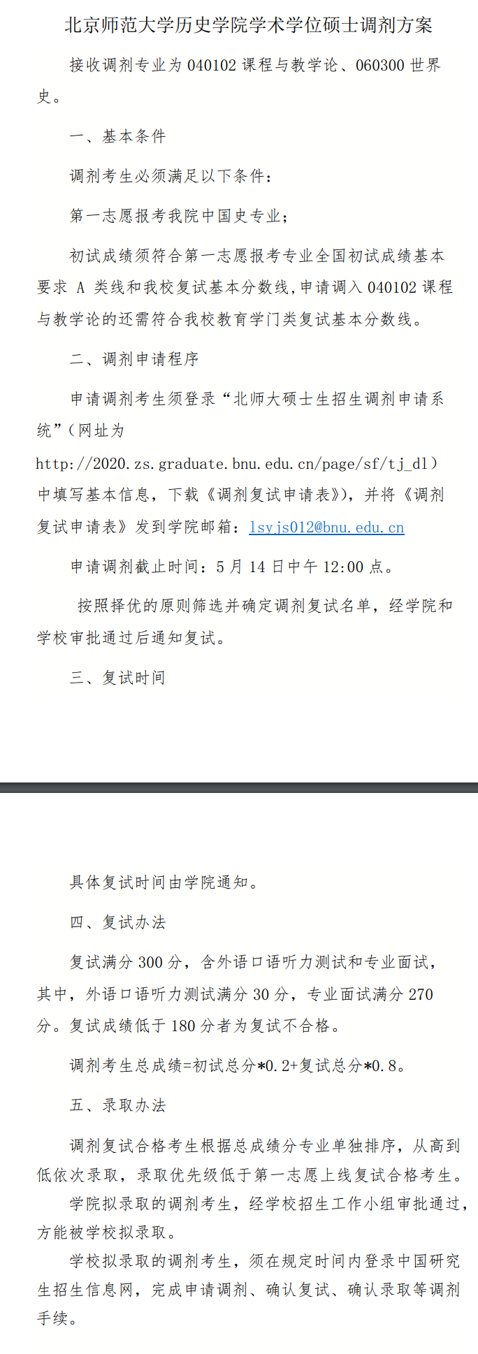 北师大考研辅导班:2020年北京师范大学历史学院学术型硕士考研复试调剂方案