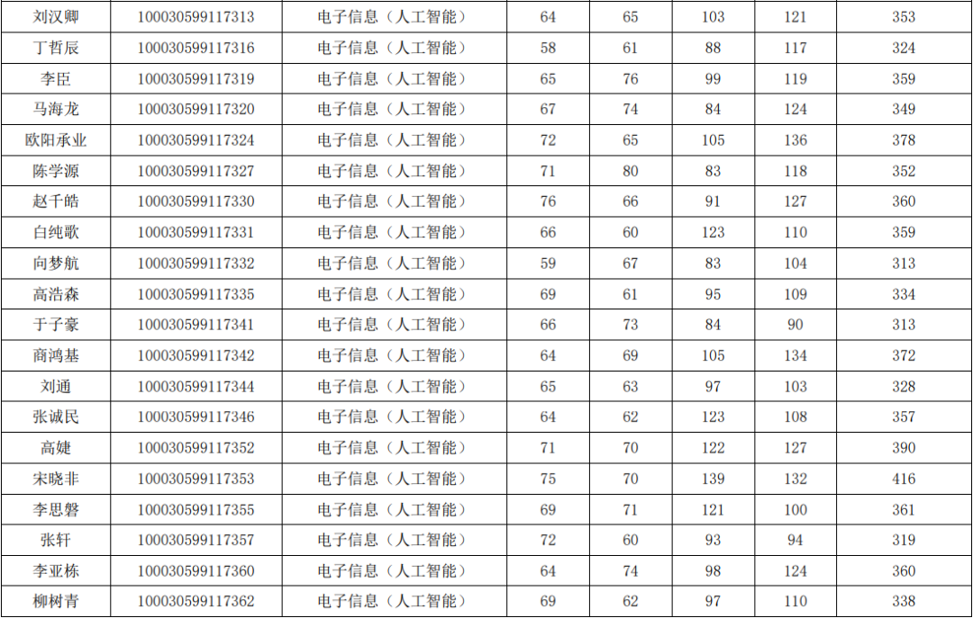 清华大学2020年深研院电子信息(人工智能)硕士研究生复试名单