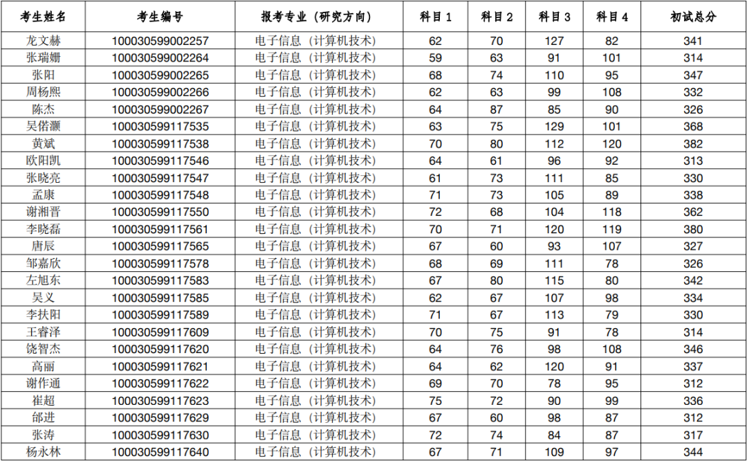 清华大学2020年深研院电子信息(计算机技术)硕士研究生复试名单