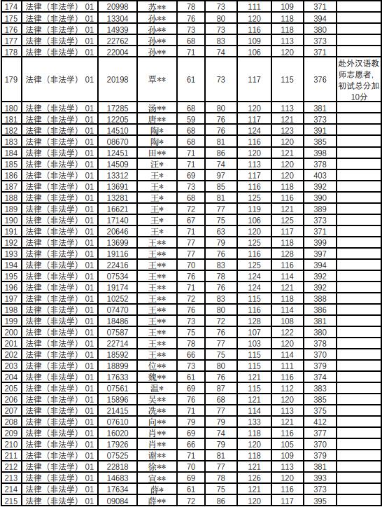 法律硕士(全日制和非全日制法学):外语55,政治55,专业一90,专业二90,总分370