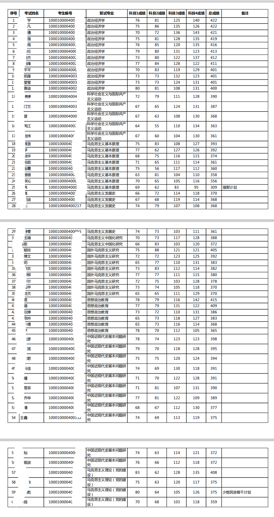 (3)马克主义理论一级学科:55-55-90-90-355,各专业复试比例原则上不超过1:1.5(出现并列情况除外)。