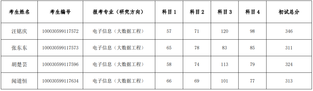 清华大学2020年深研院电子信息(人工智能)硕士研究生复试名单
