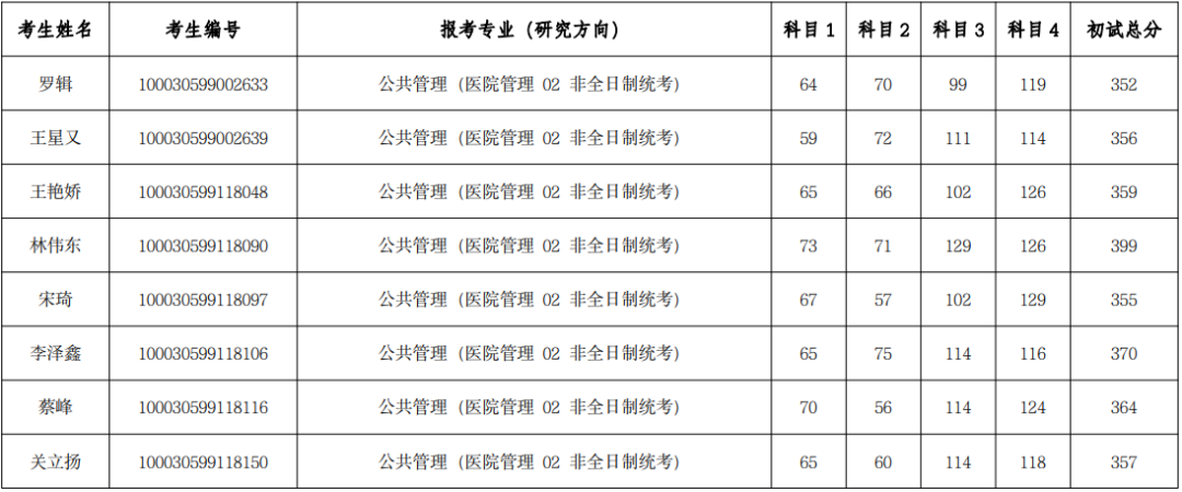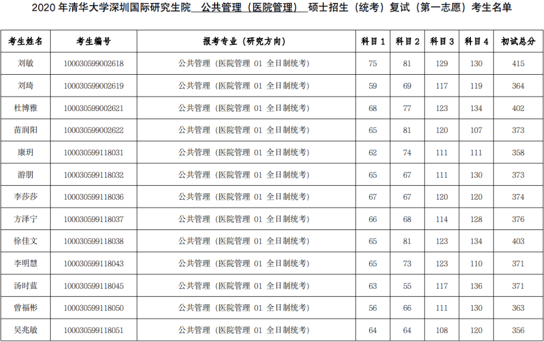 清华大学2020年深研院公共管理(医院管理)统考硕士研究生复试名单