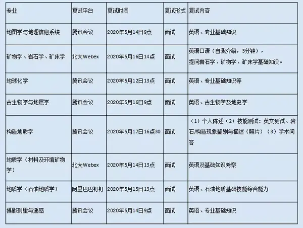 2.各专业的复试时间、平台。