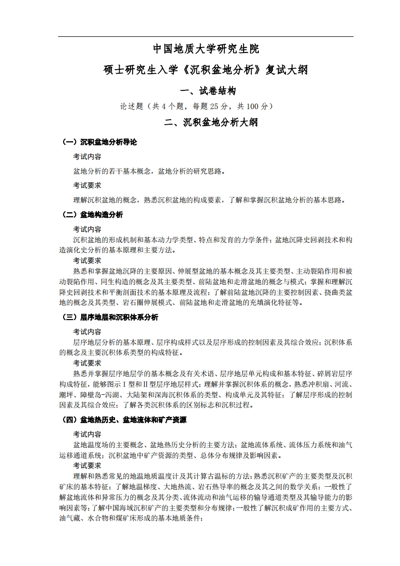 中国地质大学考研辅导班: 中国地质大学(武汉)2020年沉积盆地分析(适用于海洋科学专业硕士生复试)