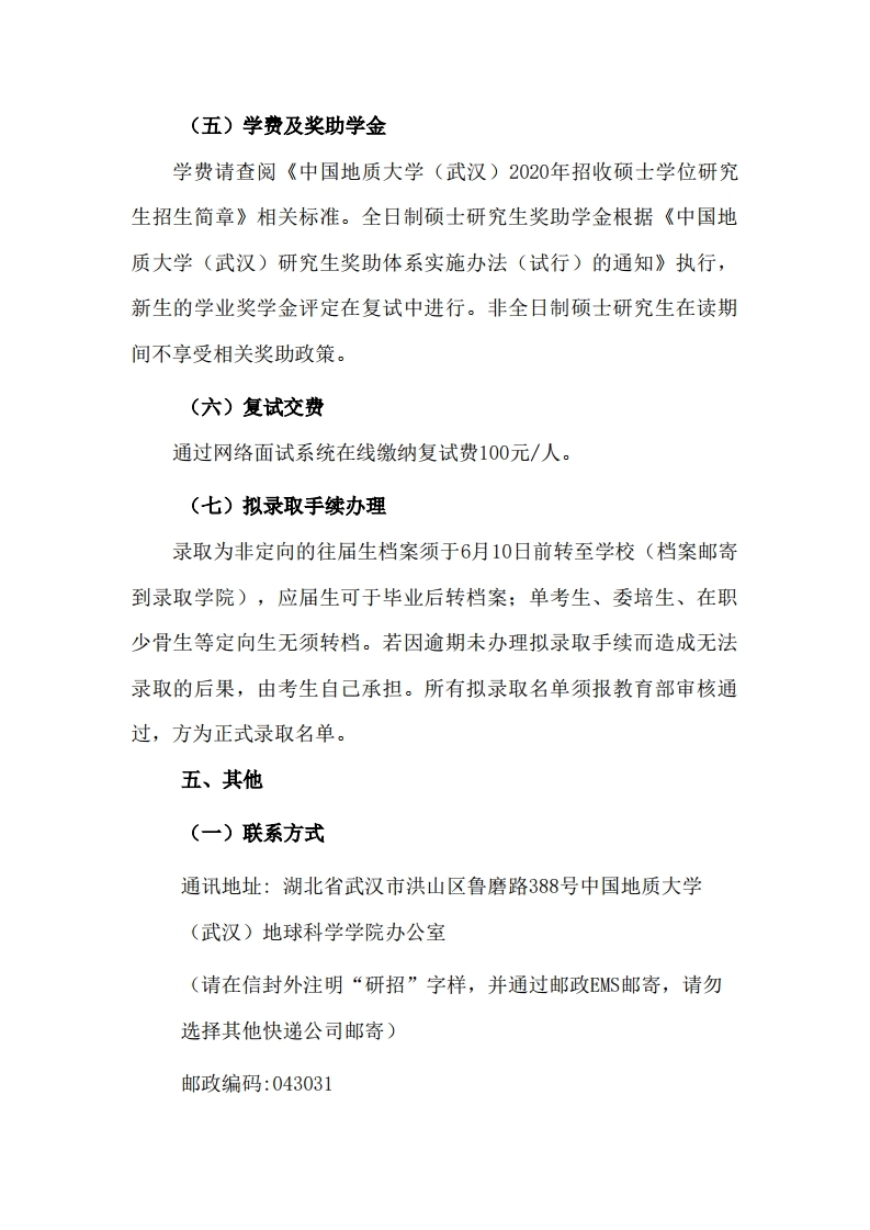 中国地质大学考研辅导班: 中国地质大学(武汉)地球科学学院2020年硕士研究生复试录取工作公告